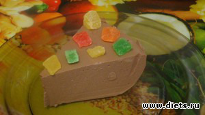 15 г желатина замочить стаканом воды на 30 мин. Потом слить воду с набухшего желатина ( если останется). Поставить на медленный огонь, добавить пол стакана молока, 400 г творога, 2 ст. л. какао,2 ложки меда