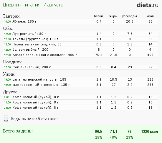На полдник выпила сока, на ужин - сыр творожный был с салатиком из морской капусты (в ней хоть и растительного масла много было, но выбирать не из чего, полезных продуктов в ближайшем магазине не нашлось