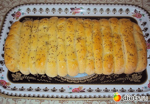 Выложить, прижимая друг к другу, все жгутики с начинкой швом вниз на смазанный противень.
