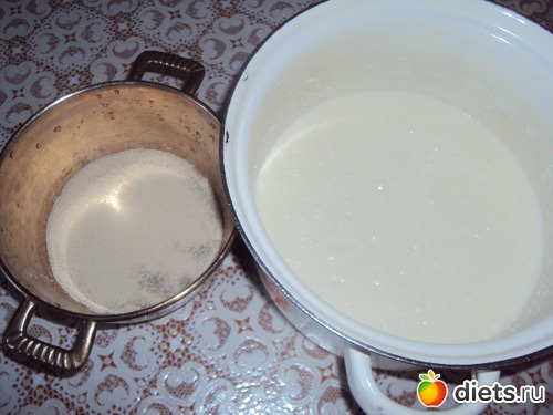 В тёплой воде развести сахар и дрожжи. Дать немного постоять, пока масса не начнёт вспениваться.