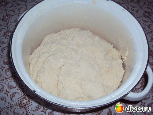 К творожно-простоквашной массе добавить дрожжевую смесь, муку и растительное масло. Хорошо вымесить тесто.
