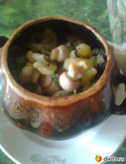 Дома решила себя порадовать - надо было снять стресс, и в голове сразу созрел рецептик вкусняшки - картошечка с шампиньонами в горшочке... Не стала себе отказывать в таком удовольствии: