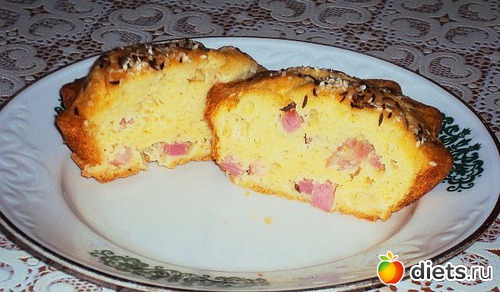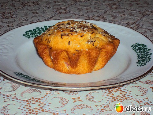 Замечательные сырные кексы с кусочками ветчины, обсыпанные кунжутом и тмином.