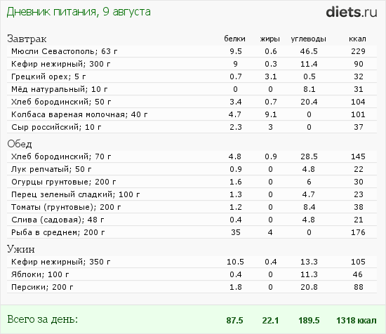 Сегодня первый день Вашей диеты.