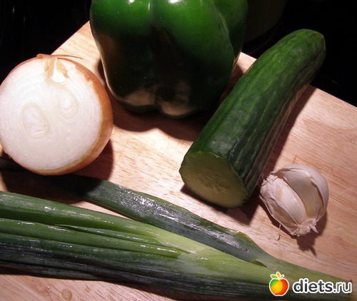Нам понадобятся - Огурец, Перец зеленый, Лук, Чеснок и Зеленый лук