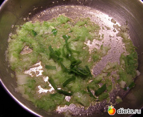 Протрем Чеснок, Лук, и Перец в терку и немного налив оливкового масла поджарим на сковородке