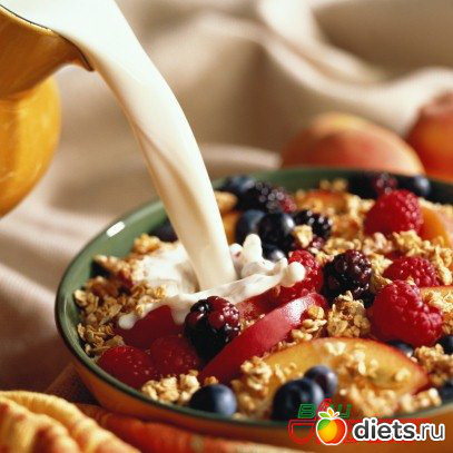 Также, заправками, использующимися в диетологии, могут быть нежирные сорта йогуртных продуктов, кефир, а также соки без содержания сахара. Если вы страдали долгое время проблемами с желудком и боитесь теперь употреблять фруктовые напитки, то используйте минеральную воду, разумеется, негазированную. Именно молочные продукты придадут мюсли еще больше полезных свойств. Таким образом, можно считать, что мюсли еще и ценен своим разнообразием вкуса.