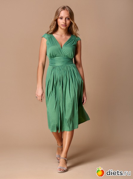 -женскую одежду с мелкими складочками и защипами на груди, с драпированным запахом и сборками;
