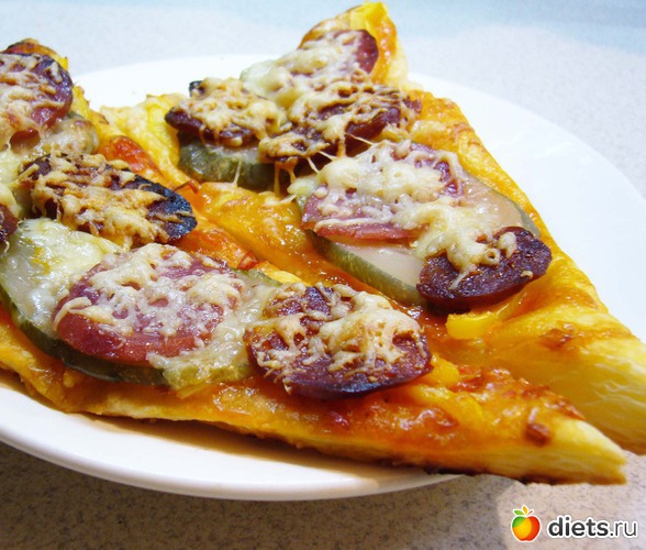 Diets.ru Быстрая пицца с маринованными огурчиками.