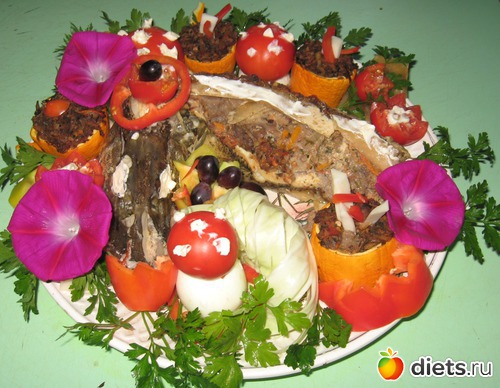 6. Ставим в холодильник нашу щуку и на следующий день украшаем к столу