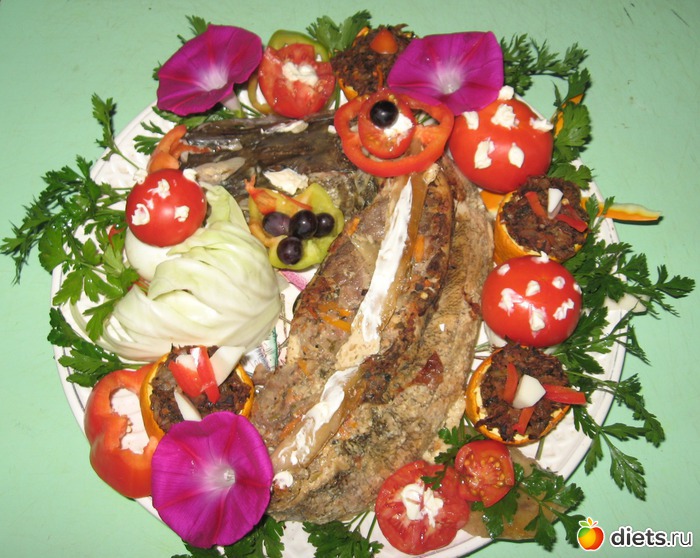 Мой муж Володя был на рыбалке и в поймал щуку и я приготовила ее к празднику.