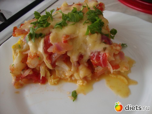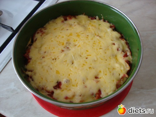 Посыпать сверху натертым сыром. Выпекать при температуре 180 градусов около 15-20 минут.