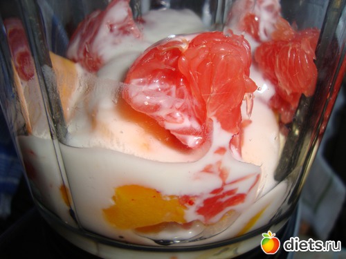 фруктовый смузи (полгрейпфрута, персик, банан, 100мл нежирного кефира) на двоих.
