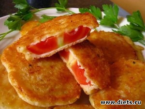 Далее помидоры окунуть в кляр и выложить на сковороду с помощью ложки или лопатки.