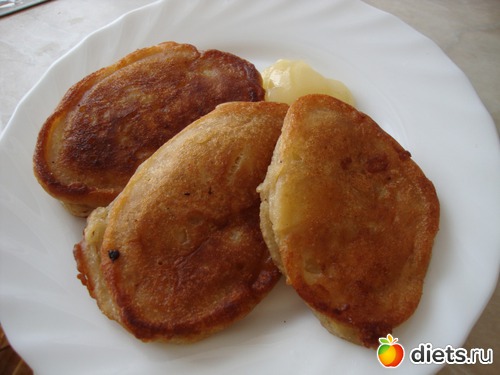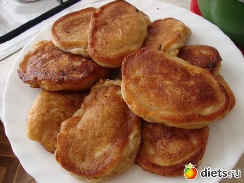 1,5 яблока, около поллитра кефира, 2 ст. ложки сахара, 1 ч.л. соды, 6 ст.л. муки, корица. Чем больше муки, тем они будут пышней, и соответственно чем больше кефира - тем тоньше. У меня были пышные.