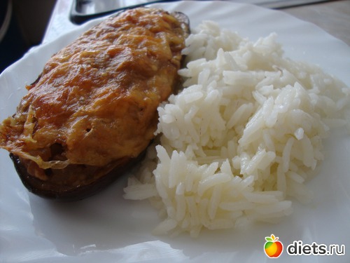 Баклажанные "лодочки", фаршированные курятиной и овощами