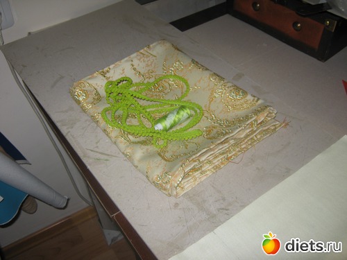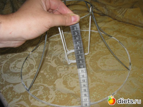 Откопала в безмерных закромах кладовки старый абажур от старой сломанной лампы, сняла мерки, раскроила ткань, заложила складки, как было сказано в описании выкройки и даже купила швейную машинку (в хозяйстве всегда пригодится), хотя шить я не умею и раскрой и пошив этого абажура - мой первый опыт в кройке и шитье, так что не судите строго. Где-то криво, где-то косо, но, как говориться "дальше - больше".