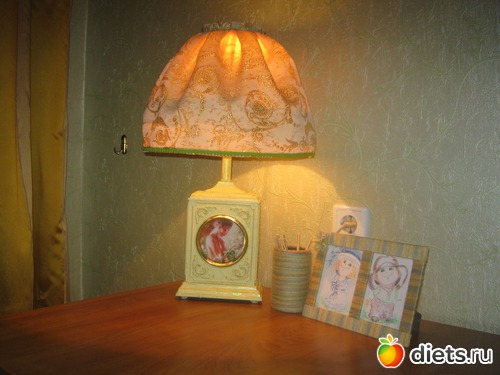 Надела абажур воткнула штекер в розетку и ВУАЛЯ! Настольная лампа готова!