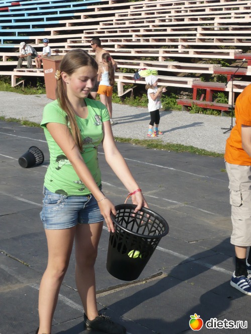 И вот уже старшая дочь держит в руках корзину, в которую мне нужно было попасть небольшими мячами. Несмотря на трясущиеся от напряжения руки, с честью отправляю мячи по назначению.