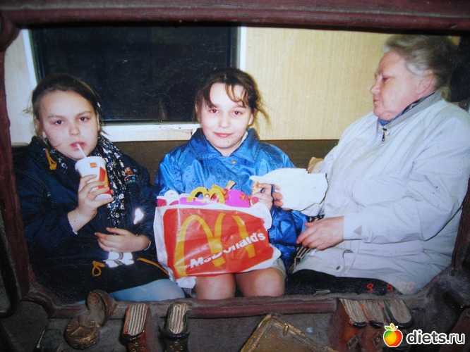 (кстати не думайте.. мы не часто в магдаке ели... раз в год.. папа строг и не разрешал вообще! благодарна ему за то, что не люблю кока колу! Нас и без магдака неплоха бабуля кормила... катрошечка, свеженький огурчик.. сосисока ммм по утра кофеек о сгущенкой и бутеры с сыром и маслом..)