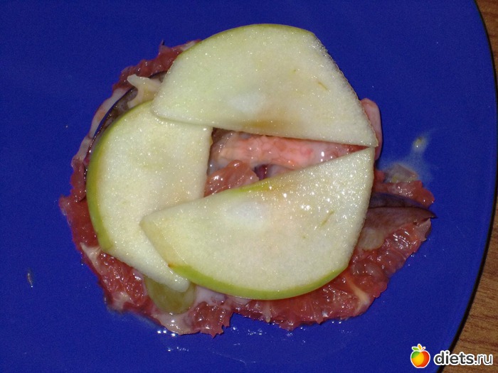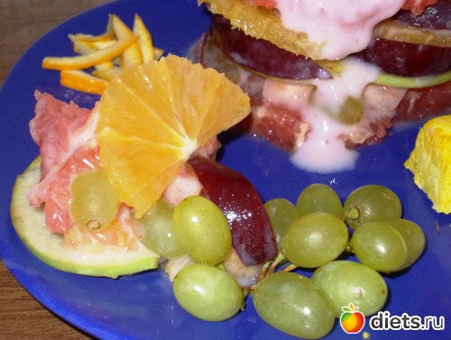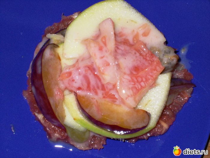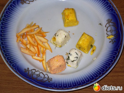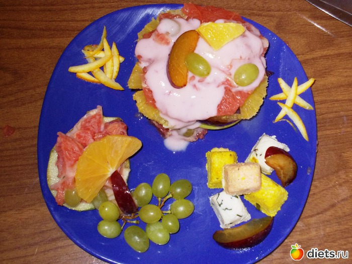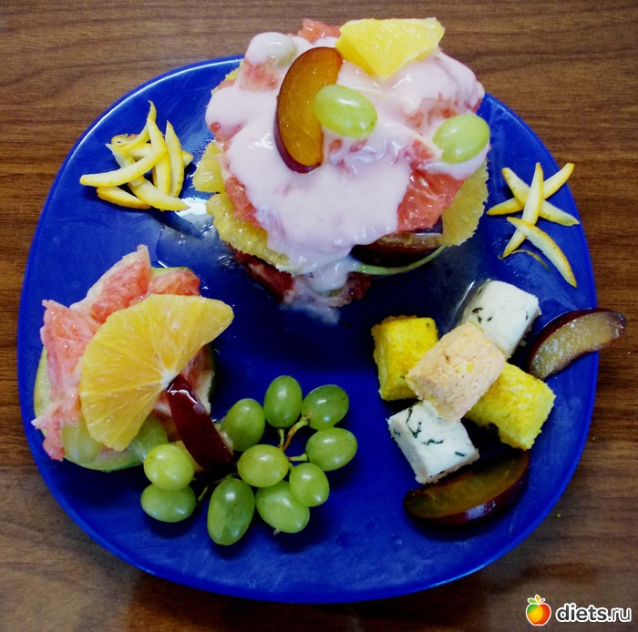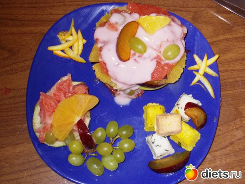 Десертик вкусный,но на всякий случай на синей тарелочке.