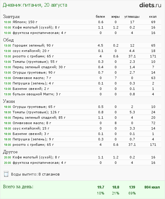 Отчитываюсь за три дня - 20 августа (был день крахмальный), прошел на работе, срывов и нарушений не было: