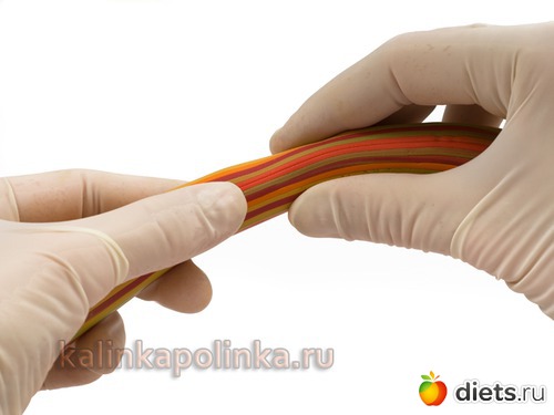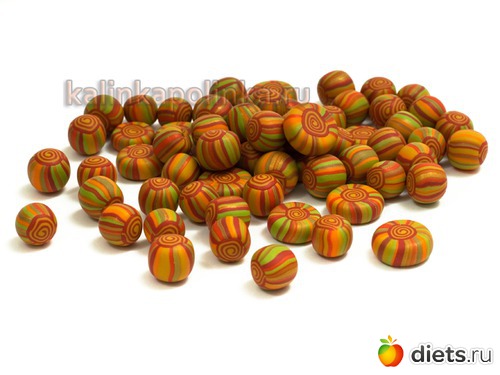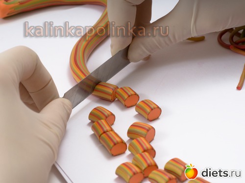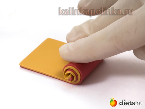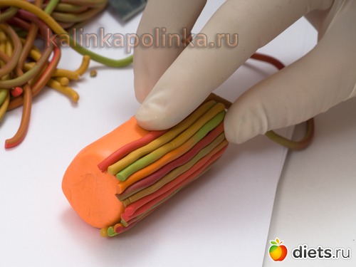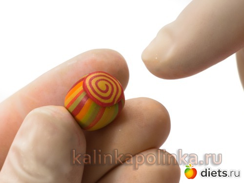 Ужать ее, нарезать тоненькие срезы и украсить место стягивания. При желании покатать в руках, чтоб рисунок слился.