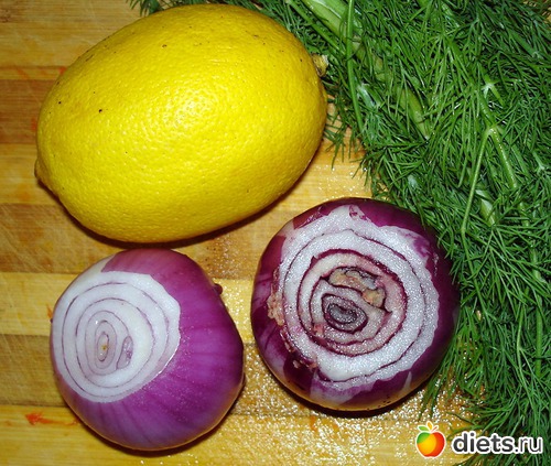 Лук репчатый(150 гр) Укроп (50гр) Сок одного лимона.