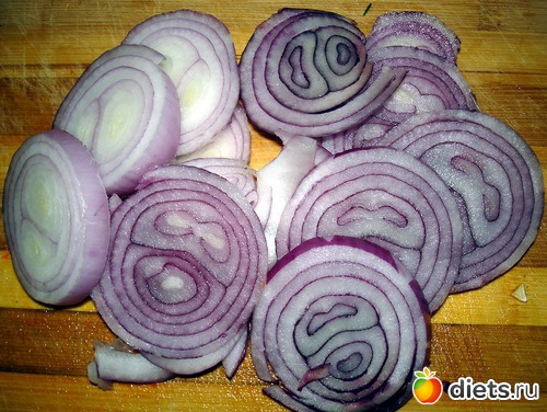 Лук нарезаем кольцами