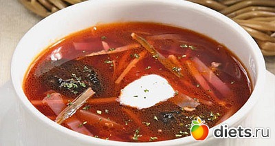 6. Чернослив отварите. Отвар добавьте в борщ, а чернослив положите в борщ при подаче. Подавайте со сметаной, посыпьте рубленой зеленью.