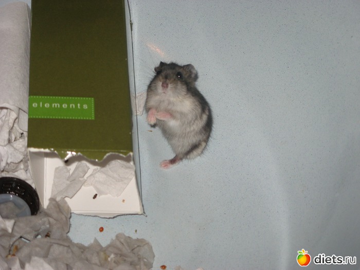 Так что теперь моя мечта о коте отодвинулась еще на более долгий срок, зато в нашей мальенькой квартирке стоят две клетки с замечательными хомячками. Единственное, что меня раастраивает, то, что Дося не идет на руки, может она со временем привыкнет к нам? Она такая хорошенькая и шубка у нее, как у шиншилы, а потрогать толком не дается...