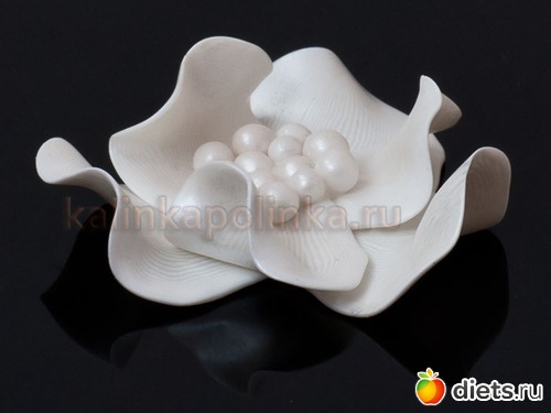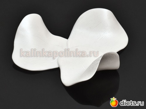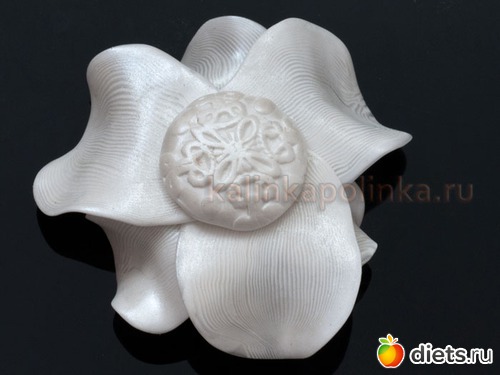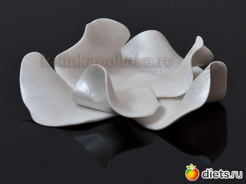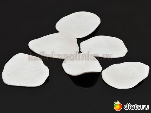 полученные лепестки пальцами в перчатках разглаживаем, правим форму. Работаем аккуратно, белый цвет очень маркий, используйте перчатки, влажными салфетками протирайте поверхность с соринками.
