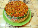 Салатницу (кастрюльку) смазать раст. маслом, покрыть пищевой плёнкой, чтобы края свисали поверх салатницы. Затем, уложить (плотно) слоями в следующей последовательности: грибы - зелень - морковь - огурцы - кур. грудка - сыр - яйца - картофель. Слои 1 и 2 не смазывать майонезом, затем последующие слои смазывать майонезом. Салат поставить в холодильник (на ночь). Затем салатницу (кастрюльку) перевернуть и аккуратно выложить на блюдо (потянуть за края плёнки). Сбоку края салата обсыпать зеленью или тёртым сыром. Приятного аппетита