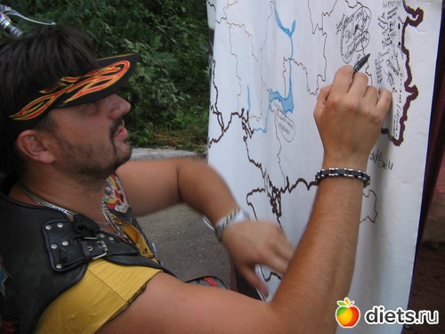 На въезде в турбазу отмечались на карте Украины. И на заднем плане видна уже заполненная карта.
