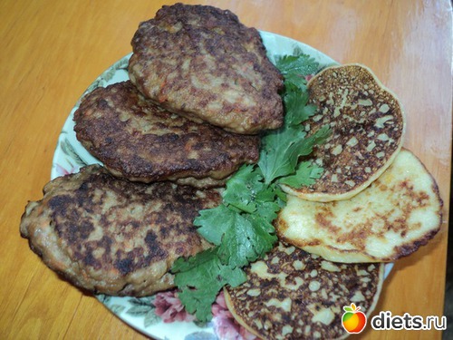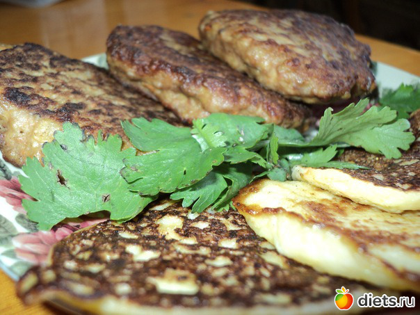 Грудки и печень прокрутить в мясорубке, так же прокрутить обжаренный лук с морковкой! Добавить яйца, муку, соль, перец. Перемешать. На разогретую сковородку с оливковым маслом, столовой ложкой выкладивать фарш.