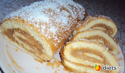 Если вы хотите приготовить рулет с масляным кремом, то горячий корж надо перевернуть на полотенце, посыпанное сахарной пудрой, и свернуть в рулет вместе с полотенцем, затем остудить, развернуть, потом уже смазывать масляным кремом и снова свернуть в рулет.