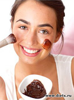 Подогрейте половину плитки горького шоколада на водяной бане, добавьте малиновое или клубничное пюре (одну ч. ложку). Нанесите теплую массу на лицо и смойте через двадцать минут.