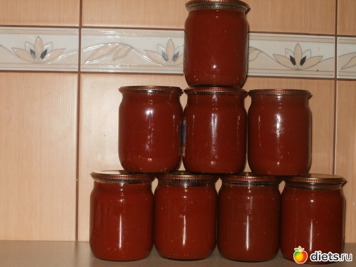 Это кетчуп по моему рецепту. Вот сколько получается с одной порции.