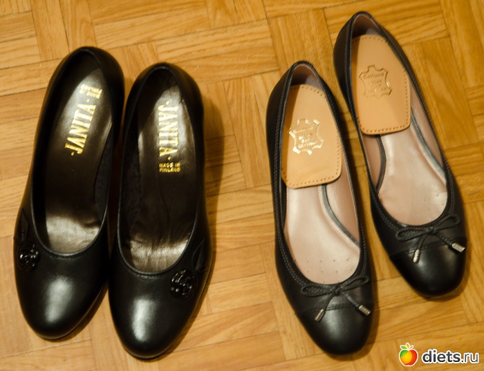 туфельки очень удобные, по крайней мере по первым ощущениям и по сравнению с похожей моделью с таким же каблуком, которую я ношу сейчас... а балетки... все в них хорошо, но пятки низковаты - пришлось специальную подкладочку под пятки организовывать