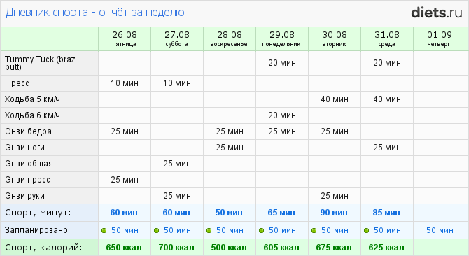 Съедено даже по весу немало, вот дневник спорта за неделю и вчерашний день