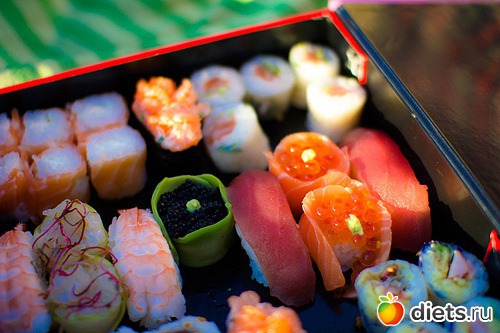 По питанию, как и говорила вечером кушала суши.(*и торта кусочек)