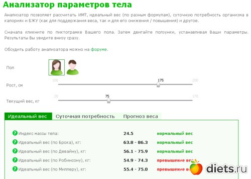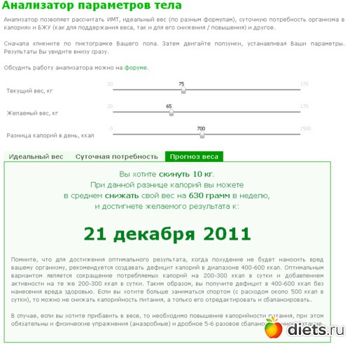 А стала внизу обсуждение читать - и что-то сразу захотелось ноги сделать. Там барышни ругаются по поводу того, что вот они худеют - а у них там по показателям калькулятора недостача веса, а у кого-то и анорексия...