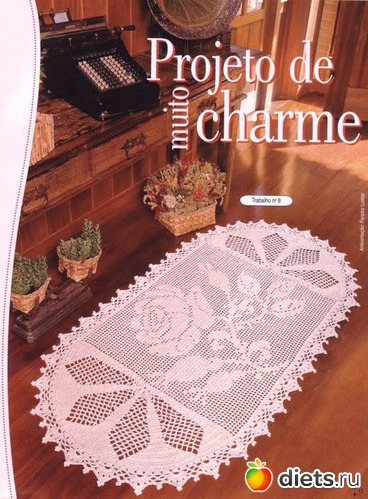 вот еще очень красивая и простая в исполнении скатерть на овальный столик, а может правда нить по толще и это коврик? решать вам, вязать - тоже...