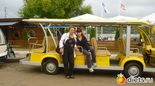 С мамочкой рядом с местным транспортом - автобусик-вагончик катает желающих по набережной.
