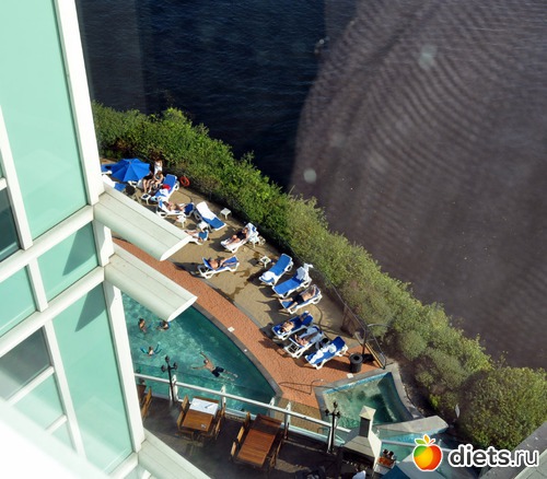 Погода в Оттаве теплейшая, желающие могли купаться - вид из окна в бассейн