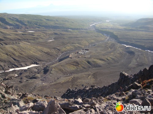 Вид с вершины. С одной стороны Авачинский перевал (далее, в Налычевскую долину). а с другой - долина Сухой речки.