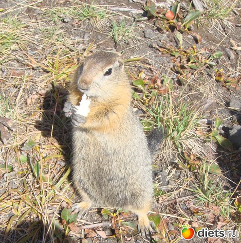 Евражки такие прикольные! Сперва подбегают, крутя хвостиком из стороны в сторону, лапками берут хлеб и, встав на задние лапки, едят:-)