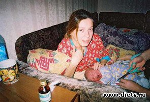 Ну вот, в общем, я лежала и набиралась сил. А моего малыша купали, переодевали, обрабатывали пуп и проч. – без меня первые, наверно 1-2 дня. Пуповину мы перерезали через 12 часов, то есть ближе к ночи. А до этого его первый раз покупали и даже сфотографировали, а также облили холодной водой (я всех детей с первого дня холодной водой обливаю – из крана). Доложили, что ребенок улыбнулся где-то там в процессе купания).