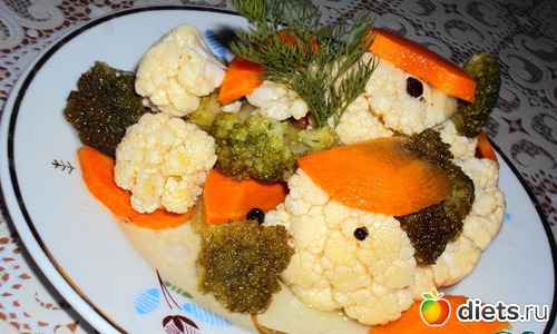 Предлагаю рецепт замечательной закуски из морковки и двух видов капусты - цветной и брокколи. Этот рецепт на днях попался мне в интернете (правда, без брокколи), и я решительно воплотила его в жизнь! Вы не поверите - это таааак вкусно, невозможно оторваться!!!