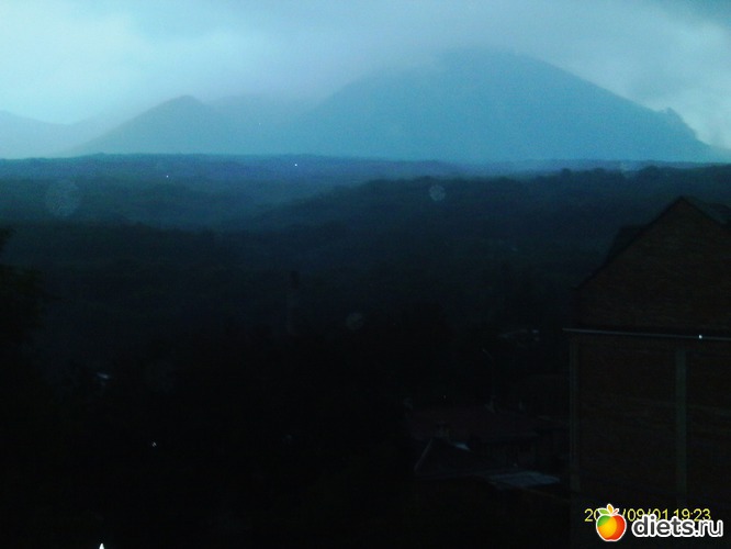 На снимке вид на гору с моего балкона в санатории. И вот на эту гору я решила совершить восхождение. Таких камикадзе как я нашлось еще человек пятнадцать из отдыхающих. Восхождение на гору это было что-то, сначала мы все весело прошли километра три до первого привала, хочу сказать, что все время поднимались, но это было какое равномерное восхождение. После привала начался кошмар, это когда идешь и ползешь все время вверх, почти по вертикальной горе и так еще несколько километров. Хотелось плюнуть на все и пойти назад, но как представишь, что назад еще дальше, а привалиться можно только к какому-нибудь дереву, решаешь что-то еще чуть-чуть, еще немножко и ты будешь горе, пересиливаешь себя и ползешь дальше и так в течение часа.